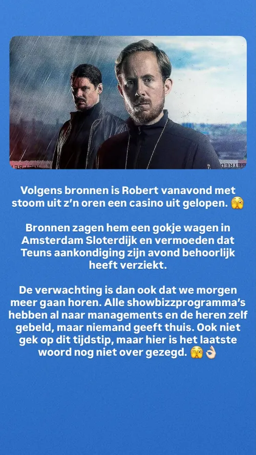 Er wordt zelfs gesproken over een incident in een casino, waarbij Robert met stoom uit zijn oren naar buiten zou zijn gelopen. De aanleiding zou een aankondiging van Teun zijn geweest, al is onduidelijk wat daar precies is gebeurd.