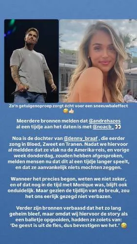 Volgens meerdere bronnen en realitypagina’s zoals RealityFBI, is André al sinds maart in contact met Noa. Dat is dus ruim vóór de officiële breuk met Monique. Tijdens Holland Zingt Hazes zouden de twee elkaar beter hebben leren kennen, en sindsdien lijken ze elkaar niet meer los te laten. Bronnen beweren zelfs dat Hazes haar heeft beloofd met haar te willen trouwen. Ai...