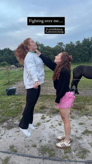 Michelle laat zien dat ze niet onderdoet voor haar sportieve oudere zus. Waar Antoinette op het ijs de controle houdt, lijkt Michelle in de paardenweide het heft in eigen handen te nemen. En hoewel het tafereel misschien wat heftig oogt, kunnen we er niet omheen: dit is pure zussenliefde, op z’n ruigst.