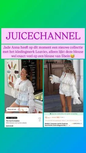 Het gaat hier niet om ‘geïnspireerde ontwerpen’, maar letterlijk dezelfde producten. Eén top die je Jade ziet dragen komt precies overeen met van Shein, van stof tot stiksel. Alleen het prijskaartje is anders: bij Loavies betaal je daar rustig drie keer zoveel voor.