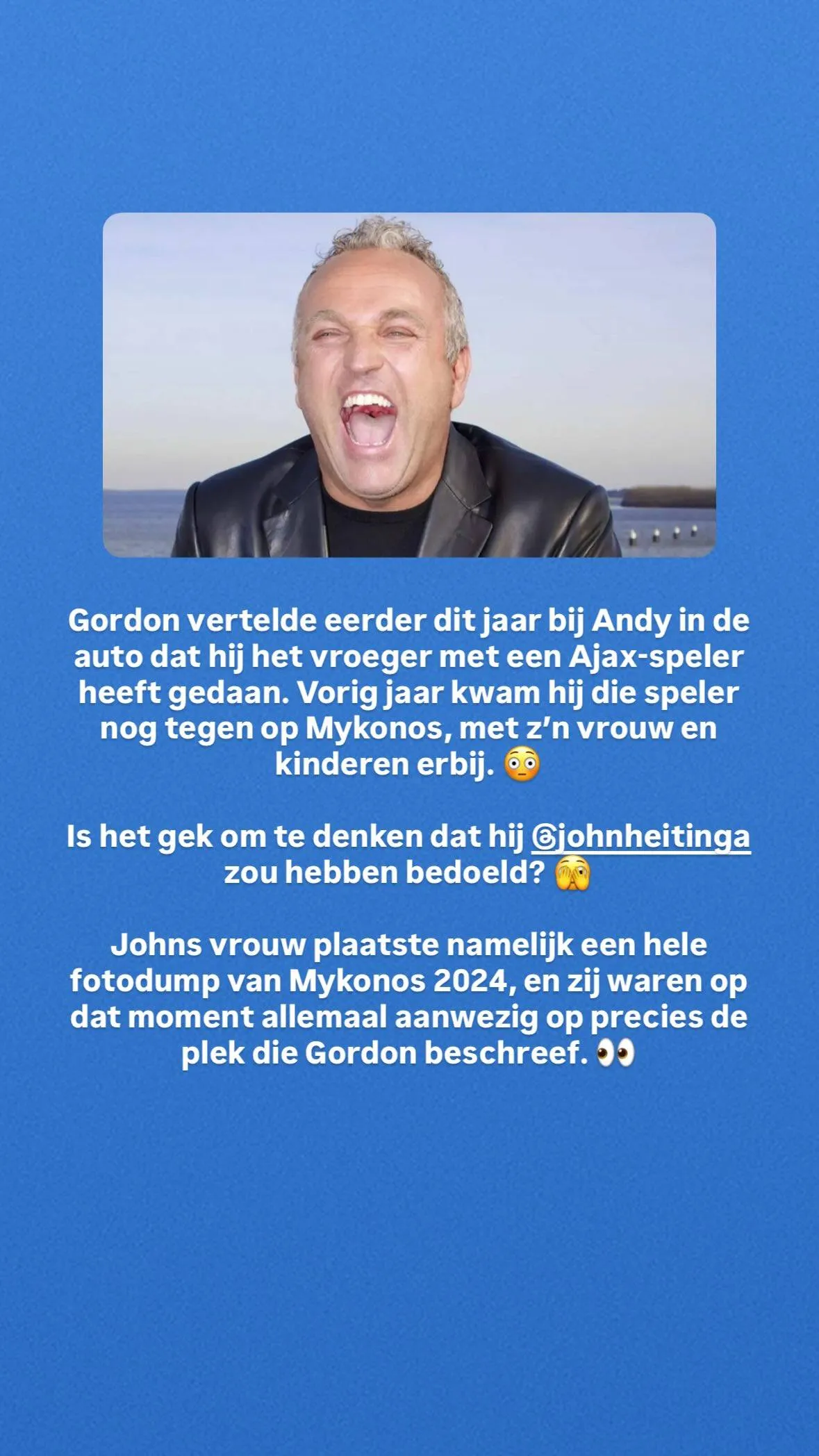 Waar RealityFBI deze conclusie vandaan haalt? Hun bronnen melden dat John Heitinga in 2024 toevallig precies tegelijkertijd met Gordon op vakantie op het prachtige Mykonos was. Dat is een opvallende samenloop van omstandigheden, moet je toegeven, en het past naadloos in het verhaal van Gordon. Toch zullen Gordon en John Heitinga écht niet de enige BN'ers zijn geweest die in 2024 op Mykonos waren...