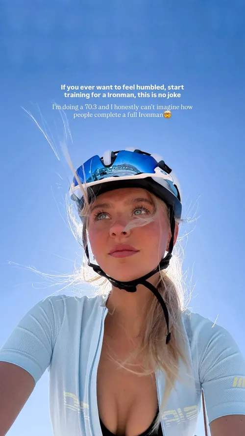 Toch gaat het deze keer niet alleen over sport. In de gedeelde beelden draagt ze een strak fietspakje dat nét iets verder open is geritst dan je misschien zou verwachten tijdens een rit. En laat dat nou precies zijn waar de aandacht naartoe gaat.