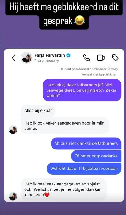 Leugens verzinnen en bedriegen kan Expeditie Robinson-kandidaat Farja Farvardin blijkbaar als de beste! Hij wordt gelukkig snel aangepakt na meerdere valse dingen te verspreiden. Adriaan ter Braack, vooral bekend door zijn Instagramkanaal Sjamadriaan, onthulde dat Farja zijn gewichtsverlies gebruikte om zogenaamde ‘fatburners’ te promoten. Het echte verhaal achter deze promotie? Dat zijn we gelukkig allemaal te weten gekomen. Het is een pijnlijke misleiding richting zijn volgers en fans!
