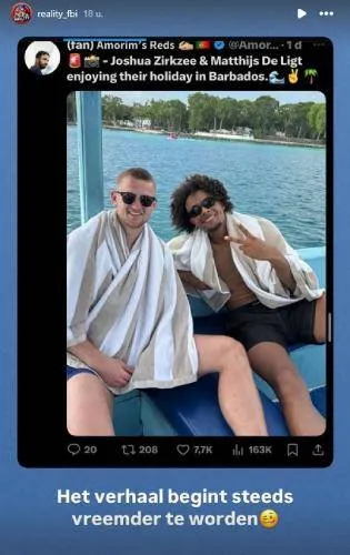 Op de gedeelde beelden is te zien hoe De Ligt zich in het zweet werkt in de zon samen met Joshua Zirkzee. Locatie: Barbados. Geen witte jurk te bekennen, geen aanstaande bruid in zicht. Sterker nog, AnneKee is nergens te vinden, letterlijk. Waar ze verblijft is vooralsnog onduidelijk, maar het feit dat ze niet naast haar verloofde is op het moment dat hun huwelijk eigenlijk had moeten plaatsvinden, zet de geruchtenmachine op volle toeren. Intussen lijkt het er sterk op dat de sfeer in Barbados vooral draait om zon, zweet en... vrouwelijke aandacht. Het is slechts het begin van een vakantie die alles weg heeft van een 'boys trip' met een ondeugend randje.