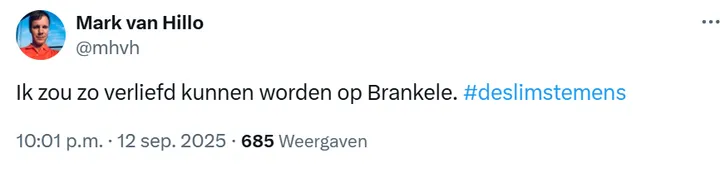 Dit jaar is Brankele een opvallende deelnemer in De Slimste Mens. Ze nam het eerder al op tegen Rob Jetten en Teddy Tops, en wist knap stand te houden in de finale. Met haar kennis over geschiedenis, wetenschap en popcultuur, en haar strategisch inzicht, maakte ze meteen indruk. Presentator Herman van der Zandt en deskundige Paulien Cornelisse konden niet anders dan onder de indruk zijn van haar snelheid en scherpzinnigheid. Brankele speelt het spel niet alleen slim, ze doet het met flair en humor, waardoor iedere ronde spannend en vermakelijk wordt. Veel mensen vinden de manier waarop ze meedoet heel spontaan en leuk, op twitter liet iemand weten dat hij 'zo verliefd kan worden op Brankele':