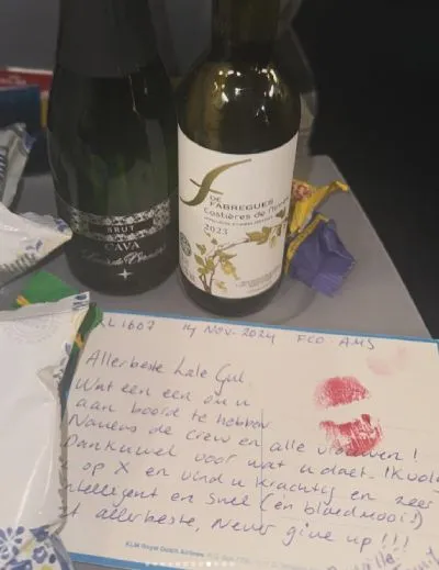 De schrijfster werd nog even tijdens de vlucht een beetje vertroeteld door de KLM. Die gaven haar een ontzettend lief kaartje om haar een hart onder de riem te steken. Zo zie je maar weer dat de invloed van Lale verder gaat dan je zou denken. Natuurlijk werd Lale Gül zelf ook een beetje emotioneel van het gebaar. Al kan dat ook te maken hebben met de flessen drank die ze erbij kreeg. Dat helpt trouwens niet met de misselijkheid tijdens de vlucht, kwam Lale achter. Wel deelt ze open alles op haar Instagram account, zodat haar fans mee kunnen genieten. En dan niet alleen van de mooie dingen, maar ook van de dingen die iets minder goed gaan in haar leven.
