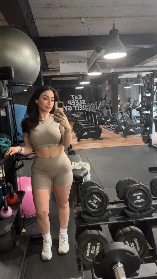 Naast de setting is het vooral haar outfit die niet onopgemerkt blijft. Lale draagt een strak, beige sportsetje dat haar figuur duidelijk accentueert. Het pakje sluit goed aan en laat zien dat ze actief bezig is met haar lichaam en sportieve levensstijl.