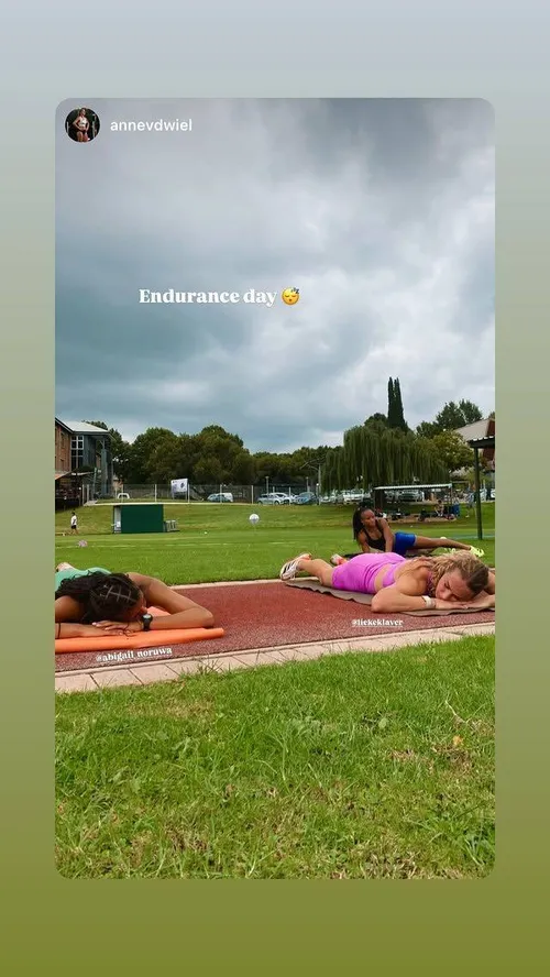 Tussen de zwoegende atletes valt er nog iemand op: Abigail Ese Osa Noruwa. Deze jonge atlete deelt via haar Instagram (@abigail_noruwa) een paar heerlijke foto's van haar tijd op en rond de baan. In een van de mooiste foto’s staat ze met een groepje meiden op de rode atletiekbaan, met de Zuid-Afrikaanse bergen als achtergrond. Sportief én fotogeniek, dat is Abigail. Ze laat met elke post zien dat het leven van een topatlete niet alleen maar uit trainen bestaat, maar ook uit genieten, vriendschap en sterke vibes op de baan. En dat doet ze in stijl.