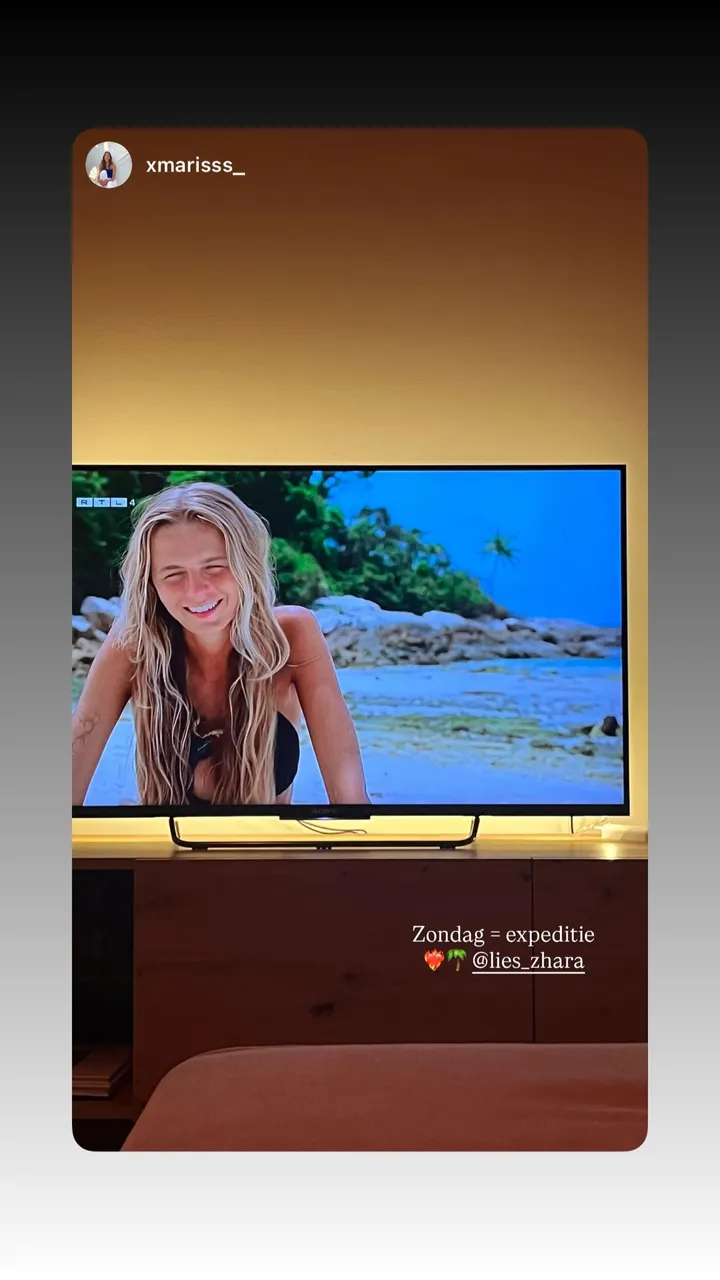 Lies Zhara ziet zichzelf terug en schrikt: in de montage valt haar ineens op dat ze consequent met haar schouders naar voren hangt. Slecht postuur. En daar baalt ze zichtbaar van. In typische Lies-stijl pakt ze het met zelfspot aan: ze deelt een foto van een schilderij waarop een meisje met een zeer kromme houding zit—een knipoog naar haar eigen slungelige look op