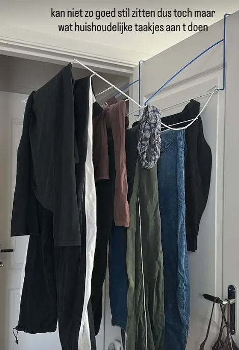 Lies Zhara haar wasrek zien, dat helemaal doorhing onder het gewicht van natte kleding. Ze maakte er meteen een grap van: “mijn wasrek heeft scoliose.” De grap kreeg veel reacties, maar Lies voegde er later aan haar story toe dat er ook een serieuze kant aan zat. Ze vertelde dat ze zelf scoliose heeft, een aandoening waarbij de wervelkolom krom staat.