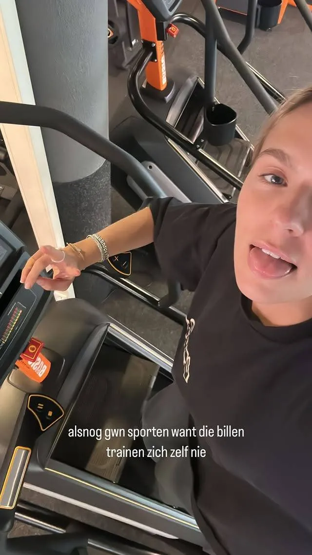 Alsof haar energie onaantastbaar is, gooit Lies er direct een nieuwe story tegenaan. Met een strak leggingtje en een sporttop die nét iets meer laat zien dan strikt noodzakelijk, poseert ze voor de spiegel in de sportschool. “Ja, ook als ik ongesteld ben,” schrijft ze erbij met een knipoog. Haar focus ligt op een flinke bil workout, en dat laat ze weten ook. “Niks houdt me tegen. Ook tante Corrie niet.”