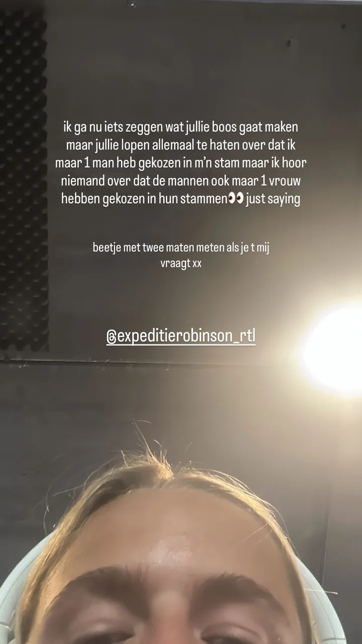 Naast de kritiek waren er ook analyses van reality-experts. Zij noemden haar gedrag “te doorzichtig” en “té dominant voor zo’n vroeg stadium in het spel”. Volgens hen is Expeditie Robinson juist een programma waar je beter eerst wat vertrouwen wint en pas later de messen slijpt. Hoewel een enkeling haar lef bewonderde, was de algemene tendens duidelijk: Lies had zichzelf met dit plan eerder in de problemen gebracht dan vooruitgeholpen. Zelf reageerde ze via Instagram ook nog even op alle boze DMs: