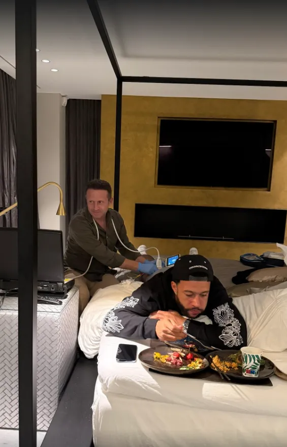 Memphis deelt regelmatig beelden van zijn bestaan als topsporter. Vaak geeft hij daarbij de voorkeur aan kiekjes van mooie spullen en dure feestjes, maar soms komen er ook beelden langs die bewijzen dat hij er echt álles aan doet om fit te blijven. Toch trokken de wenkbrauwen van veel fans op bij het zien van deze foto: wat doet die vent op de rand van het bed bij Memphis?
