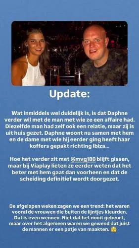 Wat begon als een geheime relatie tussen Daphne en een bezette man, is inmiddels uitgegroeid tot een complete woontransformatie. Daphne blijkt namelijk niet alleen verliefd, maar ook zwanger van haar nieuwe liefde. En alsof dat nog niet genoeg was, is ze inmiddels ook bij hem ingetrokken. Dat had wel een pijnlijk gevolg: de vrouw met wie haar nieuwe partner eerst samenwoonde, is het huis uitgezet. Ze zou volgens bronnen haar biezen hebben gepakt en koers gezet hebben naar Ibiza. Een vluchtroute naar de zon dus, terwijl in Nederland het stof van dit drama nog lang niet is neergedaald.