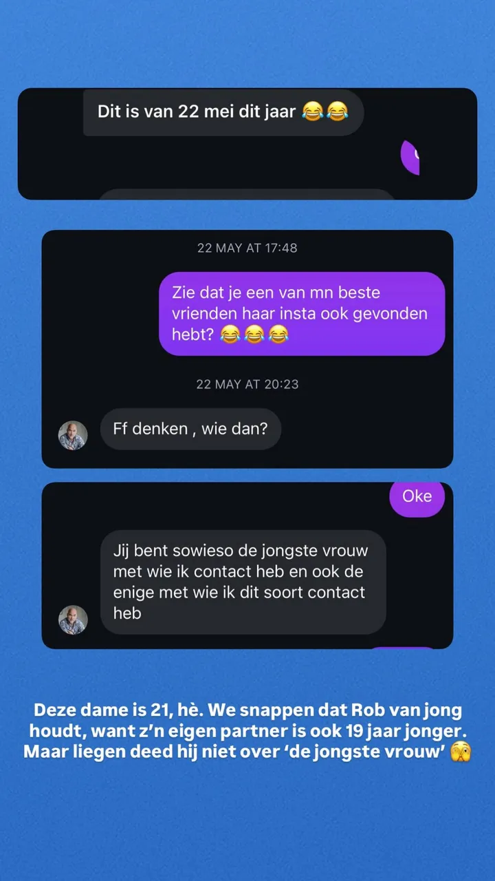 Wat opvalt, is de sterke voorkeur voor jonge vrouwen. De huidige partner van Rob Kamphues is al 19 jaar jonger dan hij. Toch blijkt hij via privéberichten aan een 21-jarige dame zelf toe te geven dat zij de jongste is met wie hij 'dit soort contact' heeft. Niet iets om trots op te zijn, zou je zeggen, maar schaamte lijkt bij deze mannen ver te zoeken.