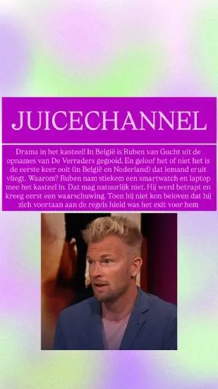 Maar daarmee was de kous niet af. Toen Ruben volgens Juicechannel niet kon of wilde beloven dat hij zich voortaan wél aan alle regels zou houden, werd de maat vol. Het resultaat: exit uit het programma en daarmee een unieke, maar weinig benijdenswaardige plek in de geschiedenis van de Belgische Verraders-reeks.