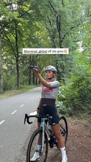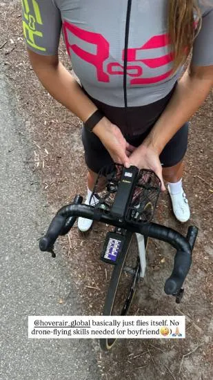 Tijdens haar ritten zie je het apparaatje letterlijk achter haar aan zoemen. Het gaat hier om een slimme, zelfsturende drone die Puck overal volgt terwijl ze op de fiets zit. Het ding hoeft niet bestuurd te worden en zorgt ervoor dat elke training automatisch wordt vastgelegd. Voor een sporter die veel tijd doorbrengt op de weg is dat natuurlijk ideaal.