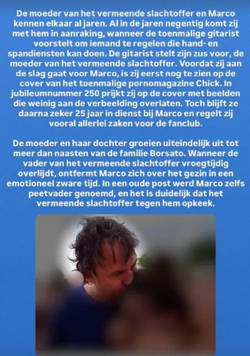 De moeder van het vermeende slachtoffer kent Borsato al sinds de jaren negentig. Zij kwam destijds in zijn omgeving terecht. De moeder zat jarenlang in of rond Borsato’s fanclub. Die langdurige band tussen de families maakt de zaak extra gevoelig. De beschuldigingen komen niet van iemand buiten zijn kring, maar uit een directe, vertrouwde omgeving.