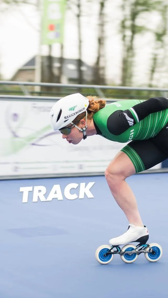 Waarom skeeleren? Simpel: het lijkt het meest op schaatsen. Dus als je benen gewend zijn om met souplesse over het ijs te glijden, moet je die vibe een beetje vasthouden. En dat doet Antoinette met indrukwekkend gemak. Haar outfit? Een soort wielertenue meets short-track suit. Korte pijpen, aerodynamisch, strak en gewoon met diezelfde helm als op de racefiets. Alles klopt.
