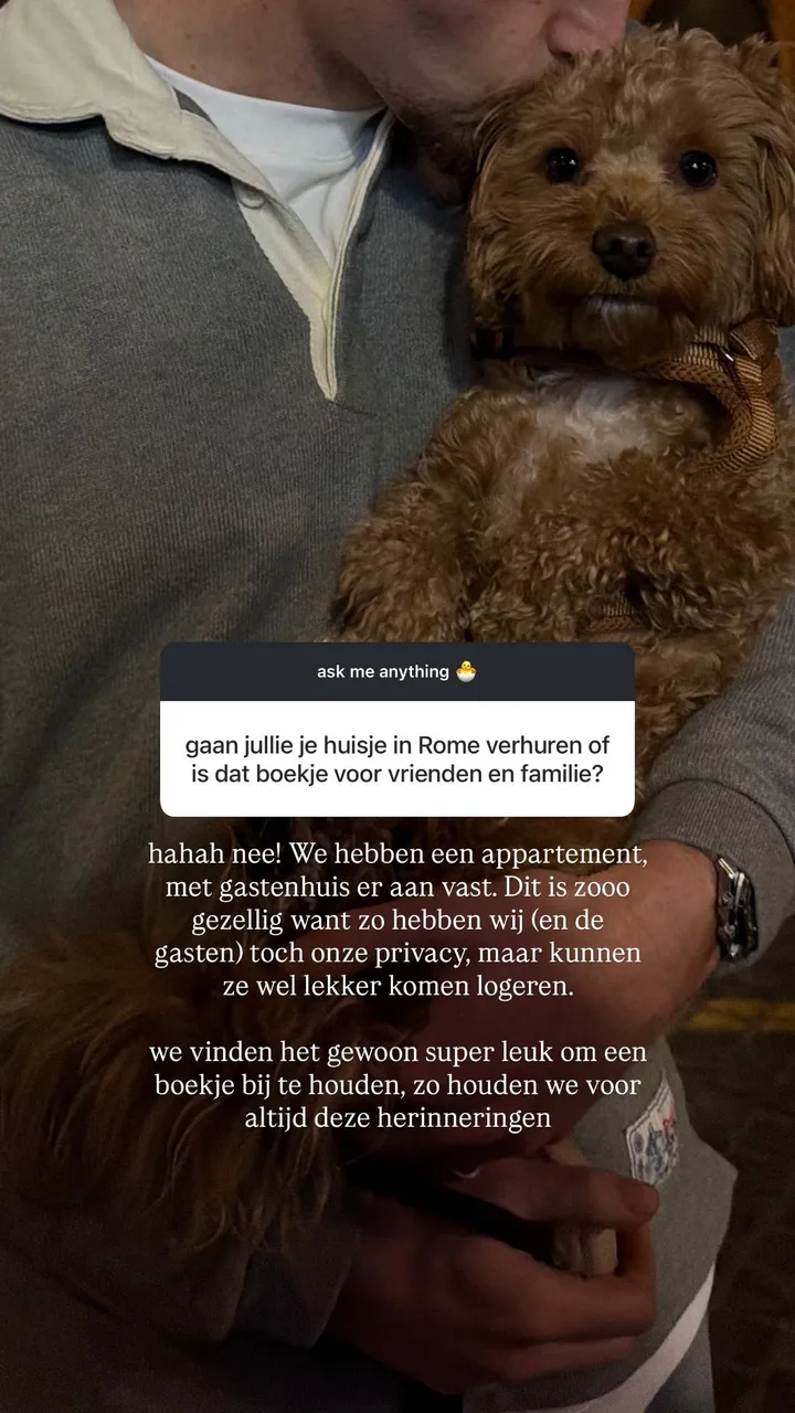 Op het eerste gezicht leek het alsof het stel een woning verhuurt. In het boekje stond een warm welkom voor “gasten”, inclusief de vraag om een korte boodschap achter te laten over het verblijf. Dat is precies het soort tekst dat je normaal gesproken associeert met een vakantiehuis of Airbnb. Volgers trokken daardoor al snel hun eigen conclusie: verhuren Jade Anna en Kenneth hun plek in Rome nu al, terwijl ze er zelf nog maar net wonen?