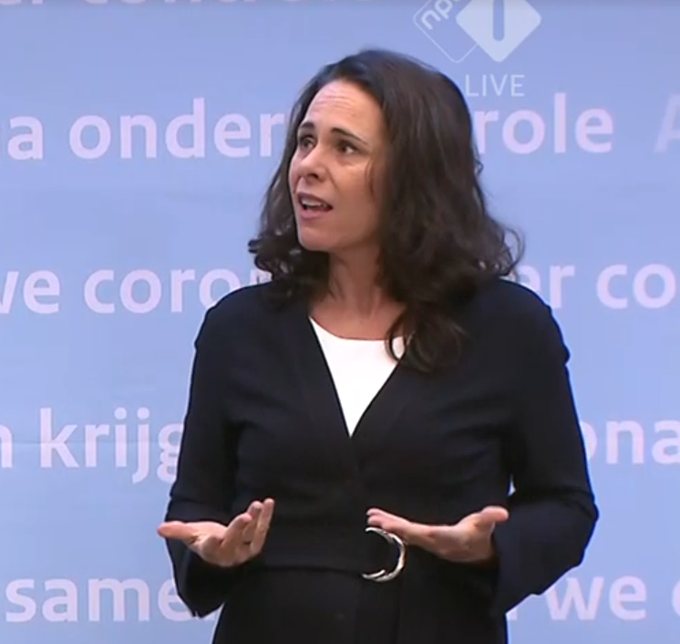 Gelukkig vertolkte gebarentolk Irma Sluis even het gezicht dat elke Nederlander op het moment van deze vraag op de bank trok: