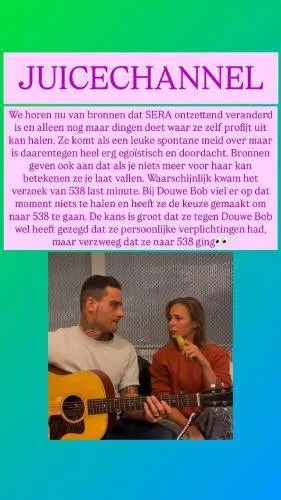 Tijdens een optreden van Douwe Bob, met wie SERA een gezamenlijke track heeft uitgebracht, zou de zangeres een verrassingsoptreden verzorgen. Douwe Bob zelf kondigde haar komst zelfs aan op sociale media. Fans waren enthousiast en stonden klaar voor een uniek live moment. Maar op het podium verscheen ze nooit. Tot grote verbazing van het publiek en betrokkenen was SERA wél te vinden bij Radio 538, waar ze druk bezig was met de promotie van haar eigen muziek. Die keuze werd haar niet door iedereen in dank afgenomen. Vrienden en collega’s uit de muziekindustrie spreken nu over een andere kant van SERA: berekenend, egoïstisch en steeds meer gefocust op eigen succes.