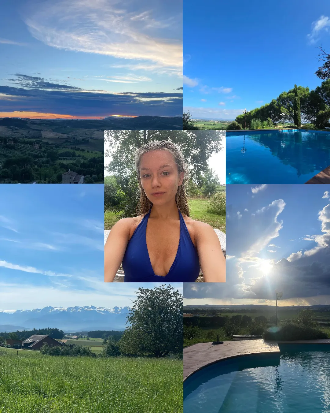 Onze beeldschone zangeres Sterre Koning heeft het erg naar haar zin in het het warme Toscane. Daarom deelt ze ook gelukkig een hele reeks aan mooie foto's! Dat vinden alle volgers van Sterre natuurlijk helemaal geweldig om te zien. In de reeks zien we gelijk de eerste beste foto want dat is Sterre zelf met een strakzittend blauw topje. Haar twee prachtige 'vriendinnen' stralen dan ook enorm goed op de foto! Daarna zien we alle mooie foto's die Sterre heeft gemaakt van het uitzicht in Toscane.
